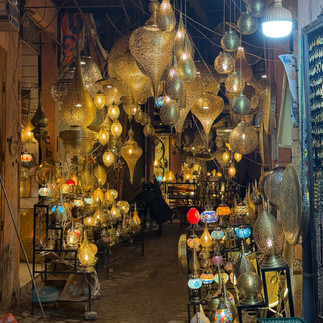 The next morning, I woke up slowly. Enjoying Moroccan tea on the rooftop and basking in the sun. I spent the day wandering the Medina and exploring the souks. It was busy, chaotic, and undeniably beautiful. I fell in love with the colors and the lights—walls draped in handmade rugs, narrow alleyways glowing beneath hundreds of colorful lanterns. I’ve always dreamed of roaming markets like these in Morocco, so I set a simple intention for the day: to get lost and enjoy.